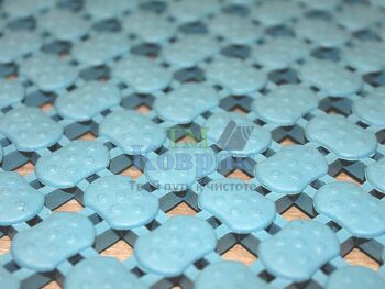 Покрытие “Лагуна” состоит из модулей которые скрепляются между собой замками с помощью молотка. Эффект противоскольжения осуществляется за счет противоскользящего материала ПВХ с которого изготовлена наша продукция, коврик отлично сцепляется с поверхностью плитки для того чтоб под нагрузкой не сдвигается с места.