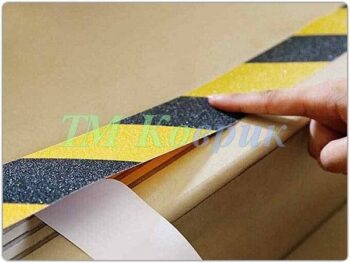 Все дуже просто протиковзна стрічка на сходинці з яскравим орнаментом відразу впадає в око, її неможливо не помітити. Крім того, завдяки своїй зернистості та грубості, вона перешкоджає ковзанню навіть за наявності вологи або снігу. Для монтажу не потрібно спеціально навчені люди та дорогий інструмент, достатньо знежирити поверхню за допомогою будь-якого розчинника, витерти сухою серветкою та акуратно звільнивши край приклеїти тильною стороною захист від ковзання, щільно притискаючи до підлоги серветкою.
