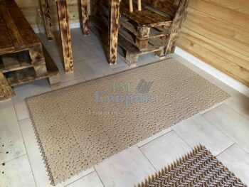 Модульний тип збирання дає можливість зібрати килимок будь-якого розміру та форми за допомогою молотка. При необхідності доріжки скручуються в рулон, це спрощує прибирання приміщення та транспортування. Матеріал не гниє від вологи, не вигоряє від потрапляння ультрафіолету, не боїться хімії, яка застосовується для знезараження. Чи не ковзає і легко ріжеться, це великий плюс при круглому басейні. Колірна гама широка, можна викласти гарний візерунок чи поєднувати кольори між собою.