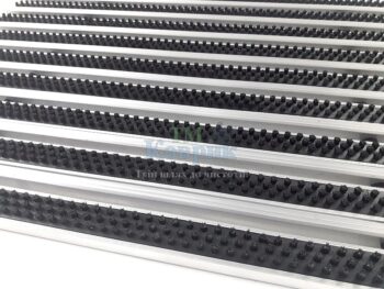 - Встановлюються придверні грати для чищення взуття в заздалегідь підготовлений приямок, або в алюмінієву рамку, на таку конструкцію легко заходити та заїжджати навантаженим візком. Красиві зовні алюмінієві грати не залишать байдужим нікого.